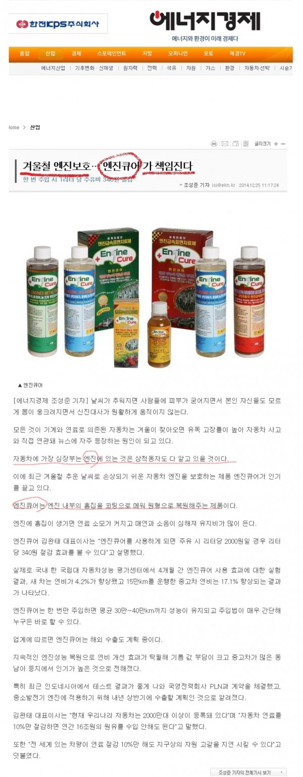 에너지경제신문,2014년12월26일>-겨울철 엔진보호 '엔진큐어'가 책임진다 페이지 정보 작성자 관리자 작성일 14-12-26 09:09 조회 2,324회 댓글 0건 본문 '엔진큐어'사용으로 겨울철 건마찰로인한 자동차엔진의 마모를 예방하세요 이전글2014년 하반기 히트상품선정<스포츠월드 2014년12월26일> 다음글한국일보 - 2014.12.10기사(부담되는 기름값 엔진큐어로 해결) 목록 댓글목록 0 댓글목록 등록된 댓글이 없습니다.