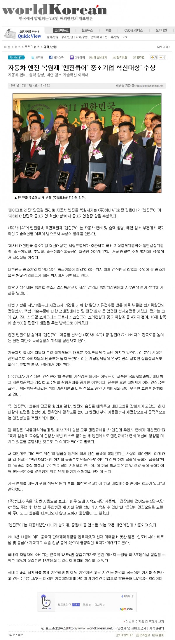 2011년 10월 17일 [월드코리안] 기사 페이지 정보 작성자 관리자 작성일 11-10-17 17:39 조회 1,910회 댓글 0건 본문 이전글2011년 10월 17일 [국토일보] 기사 다음글2011년 10월 17일 중소기업청장상 수상 기사 목록 댓글목록 0 댓글목록 등록된 댓글이 없습니다.