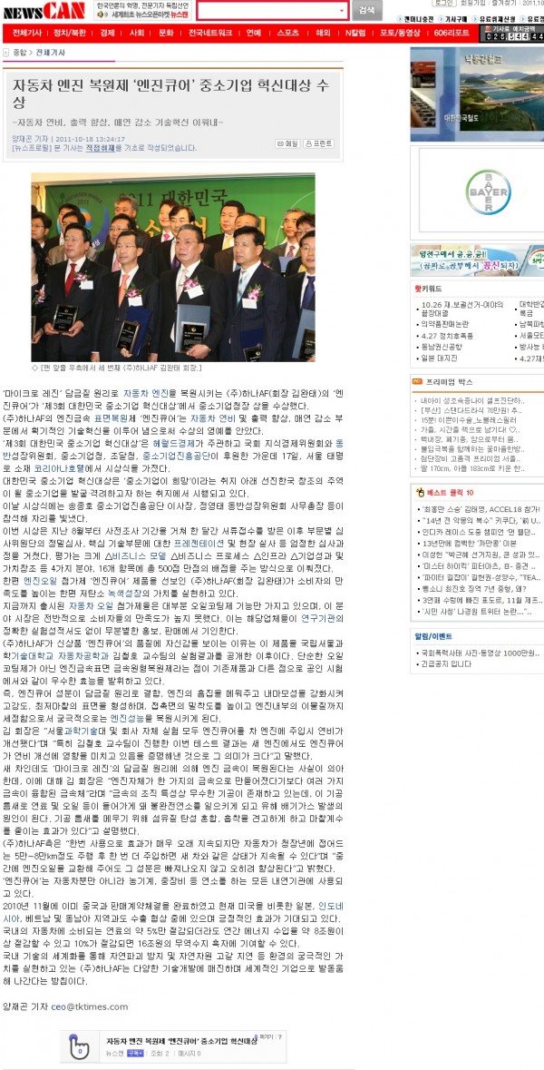 2011년 10월 18일 [뉴스캔] 기사 페이지 정보 작성자 관리자 작성일 11-10-19 12:13 조회 1,987회 댓글 0건 본문 이전글중소기업청 중소기업유통쎈타 추천상품('엔진큐어')홍보기사 매일경제 다음글2011년 10월 14일자 [건설일보] 기사 목록 댓글목록 0 댓글목록 등록된 댓글이 없습니다.