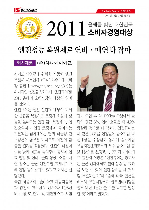 2011 소비자경영대상 수상 보도자료 페이지 정보 작성자 관리자 작성일 11-12-27 08:58 조회 1,858회 댓글 0건 본문 이전글2011년 12월 28일 [헤럴드경제]신문<비젼코리아>기사 다음글2011년 12월 23일 한국소비자연대뉴스 기사 목록 댓글목록 0 댓글목록 등록된 댓글이 없습니다.