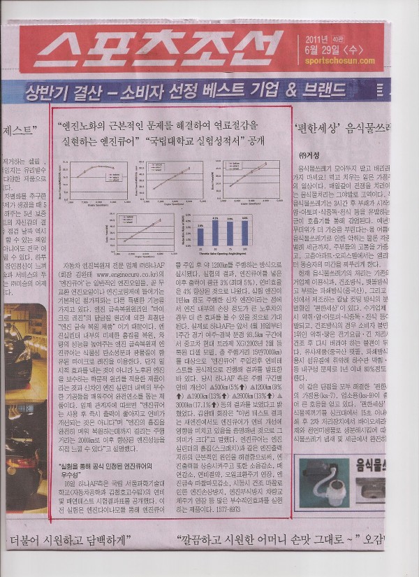 여러분의 많은 관심덕분에 스포츠 조선 2011년 6월 29일자
