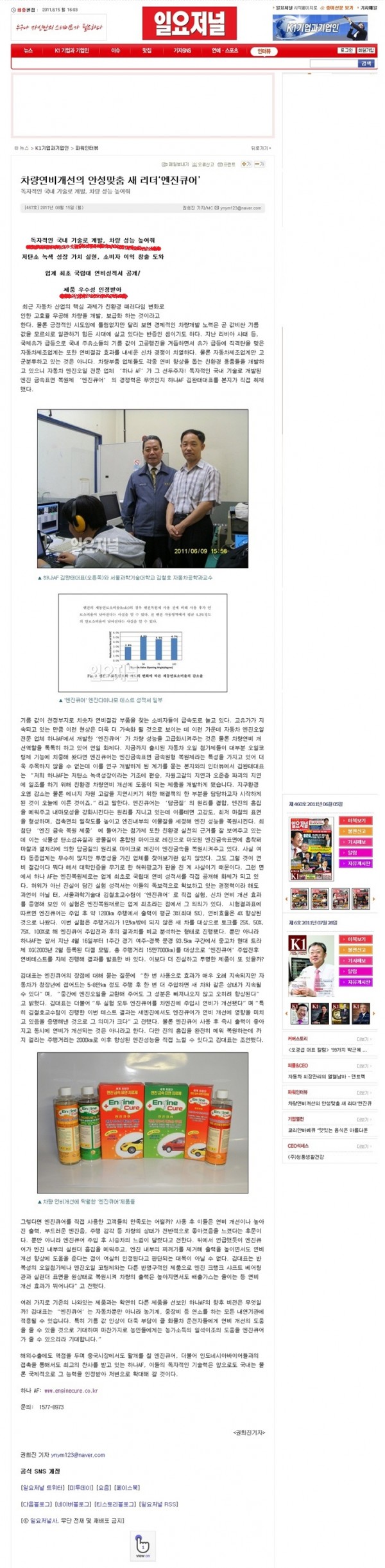2011년 8월 15일 [일요저널] 기사입니다. 페이지 정보 작성자 관리자 작성일 11-08-16 13:26 조회 2,290회 댓글 0건 본문 이전글2011년 10월 14일 [국토일보] 기사입니다 다음글[카테크]<자동차전문잡지> 8월호 기사 내용입니다. 목록 댓글목록 0 댓글목록 등록된 댓글이 없습니다.