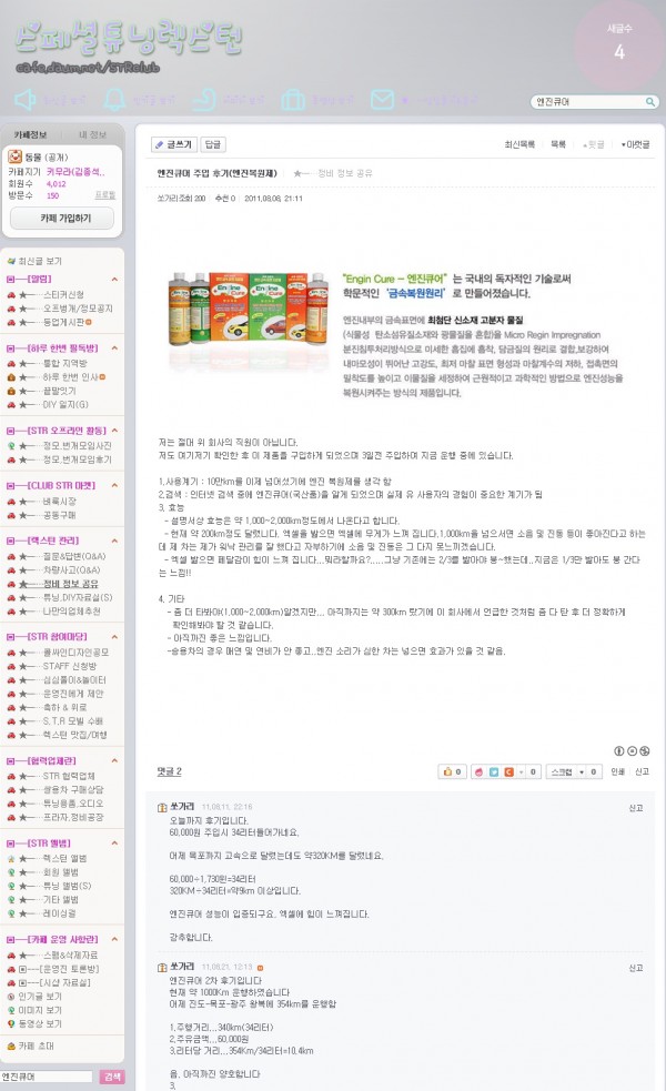 [펌]사용후기-스폐셜튜닝렉스턴 <DAUM 카페 후기글> 페이지 정보 작성자 관리자 작성일 11-08-12 14:44 조회 12,675회 댓글 0건 본문 [이 게시물은 최고관리자님에 의해 2012-04-09 09:10:46 공지사항에서 이동 됨] 이전글[펌]사용후기- <다음카페> 매연테스트 불합격 차량 엔진큐어 주입후 매연테스트 합격 <결과자료> 다음글엔진오일교환문의 목록 댓글목록 0 댓글목록 등록된 댓글이 없습니다.