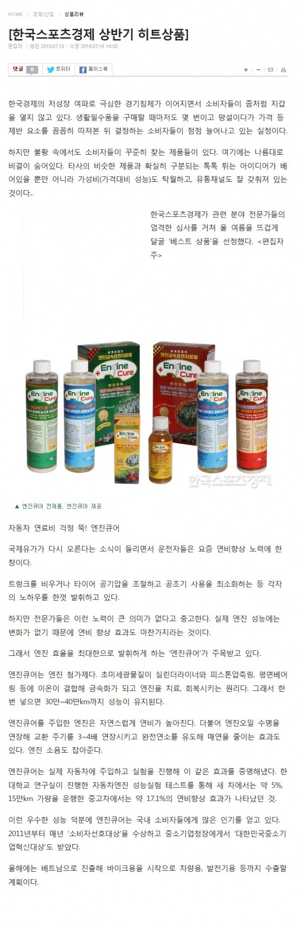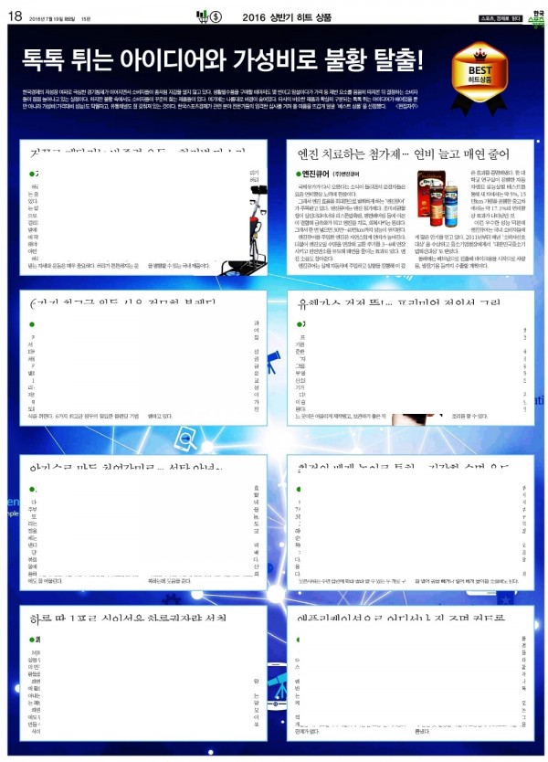 2016년도 상반기 히트상품 선정! 페이지 정보 작성자 관리자 작성일 16-07-19 08:56 조회 14,560회 댓글 0건 본문 2016년도 상반기 히트상품선정의 쾌거를 알립니다.(6년 연속)저희 제품의 집중력을 위하여 타제품을 지웠습니다. 양해바랍니다. 이전글""축"" 2016 [디지털이노베이션 대상]-신산업 / 환경기술 부문 수상 다음글엔진큐어 사용후기서 ★ 목록 댓글목록 0 댓글목록 등록된 댓글이 없습니다.